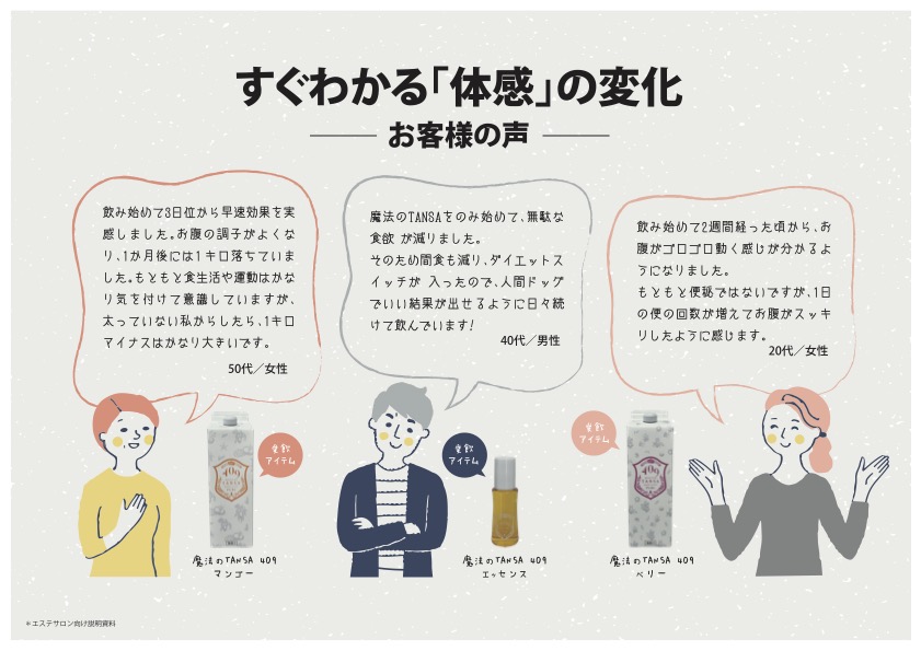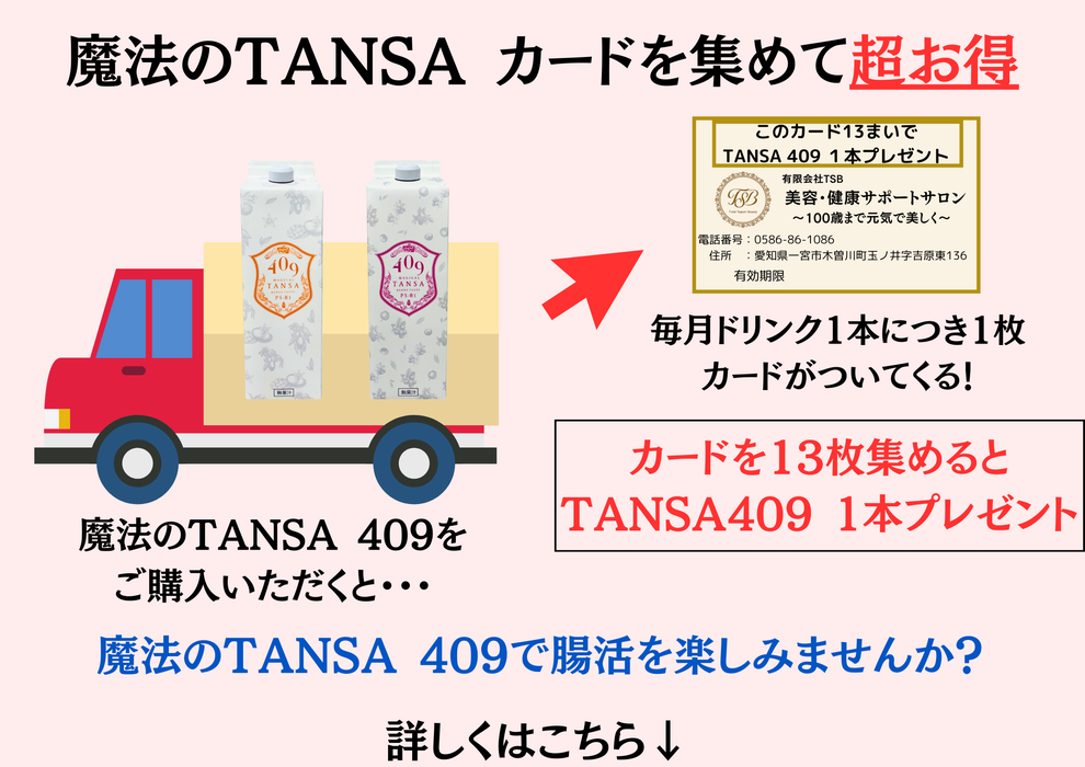 あなたのキレイと健康をサポートする栄養素を凝縮した「魔法のTANSA 409」をぜひ飲んでみてください。